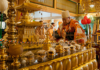 様々な草花で飾った花御堂(はなみどう)を作って、その中に灌仏桶を置き、甘茶を満たします。
