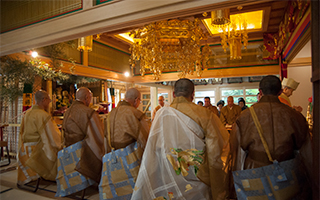 また宝塔参りを行い、僧侶が檀家さんを一軒一軒回って仏壇に読経をする棚行を行います。